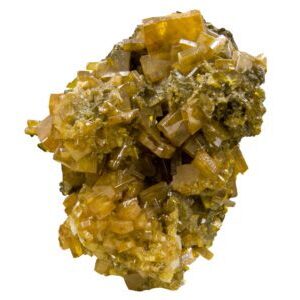 La wulfenita o molibdato de plomo se suele formar en láminas delgadas y cuadradas, en cristales tabulares cuadrados biselados o en forma masiva o granular. Sus colores varían entre amarillo, naranja, rojo, gris y pardo. Es un mineral secundario formado en las zonas de oxidación de depósitos de plomo y de molibdeno.